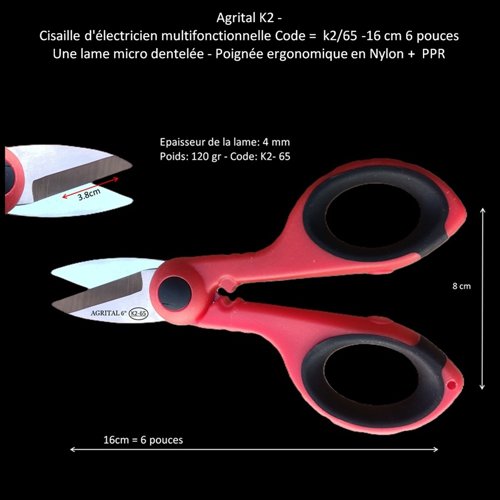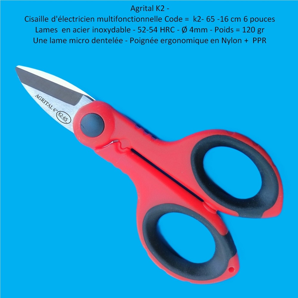 Ciseaux multifonctions pour électricien - Code k2-65 - 16 cm (6")*