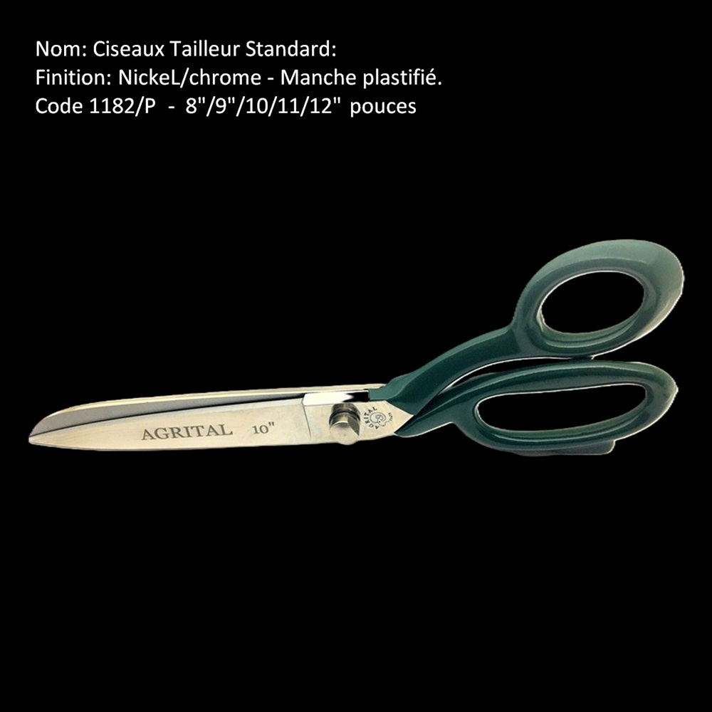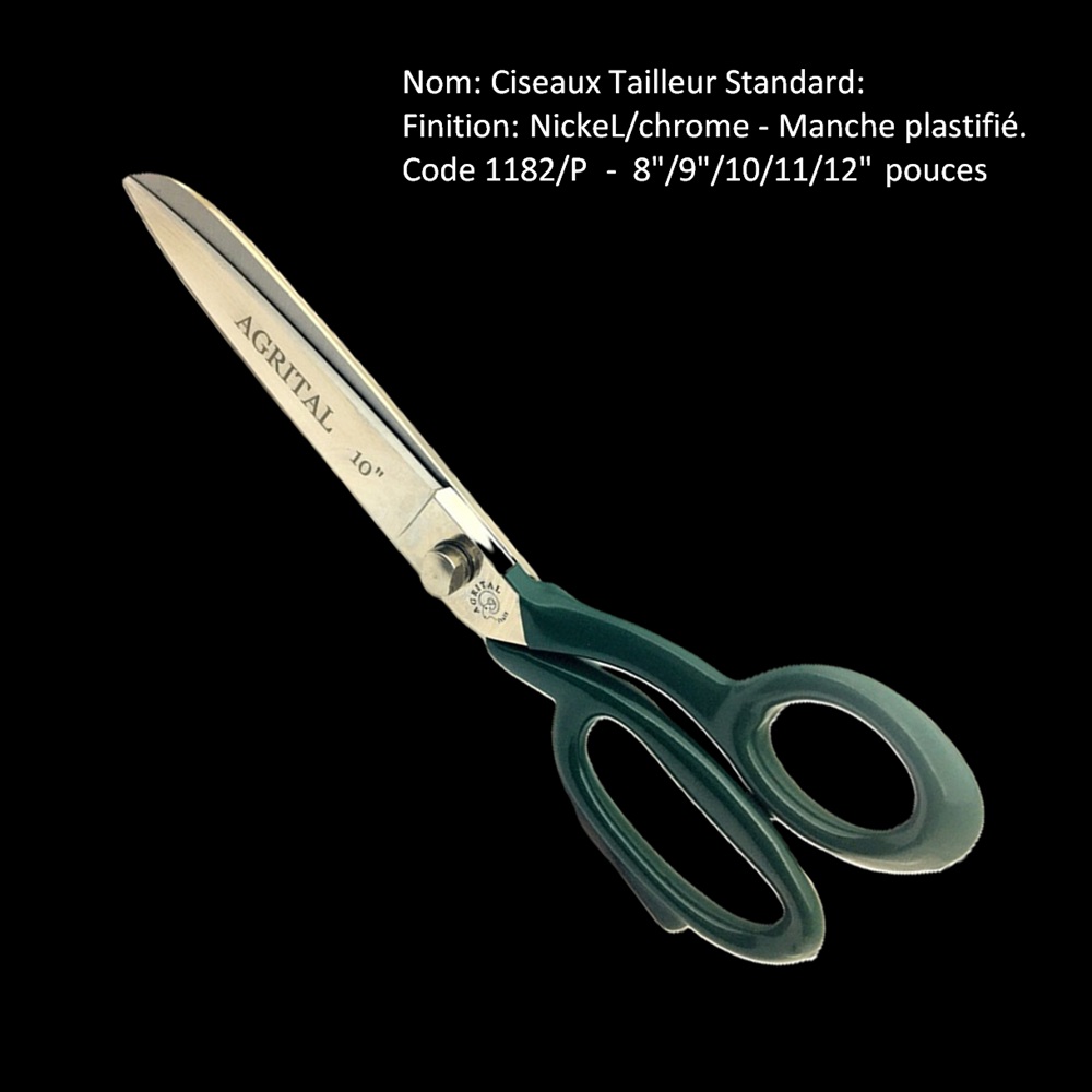 Ciseaux Tailleur plastifié - Code 1182/P- 7"/8"/9"/10/11/12" pouces
