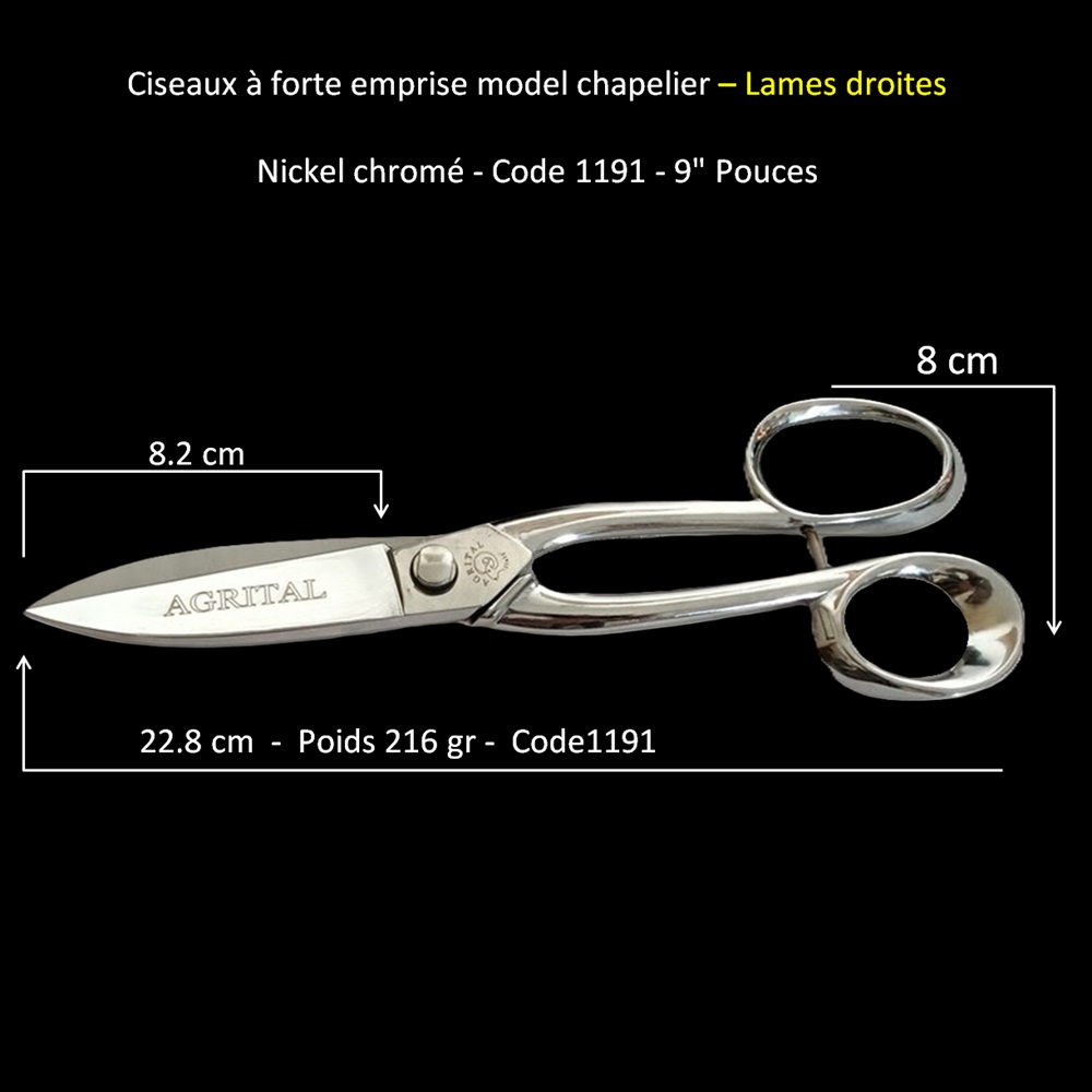 ciseaux droits étaient utilisés par le chapelier pour arrondir les feutres. La