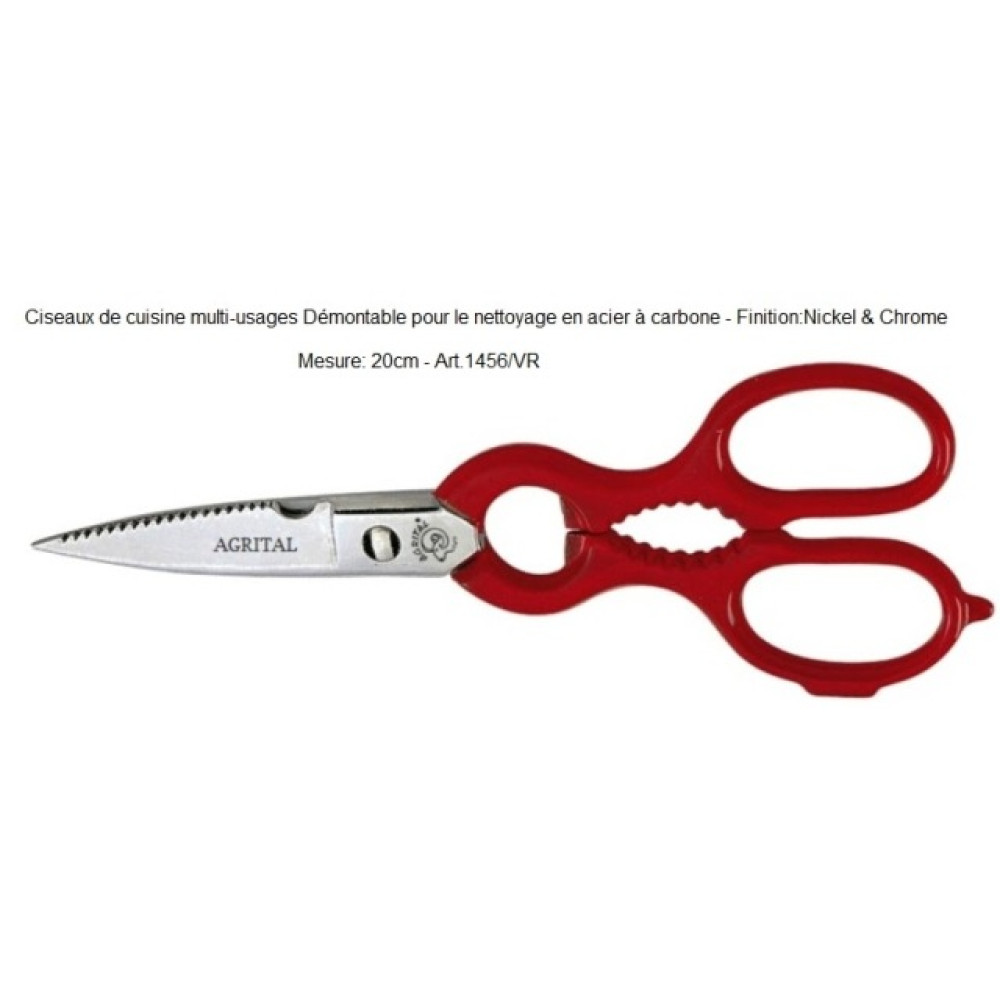 Ciseaux de cuisine multi-usages Démontable pour le nettoyage en acier à carbone - Finition:Nickel & Chrome Mesure: 20cm Art.1456/VR