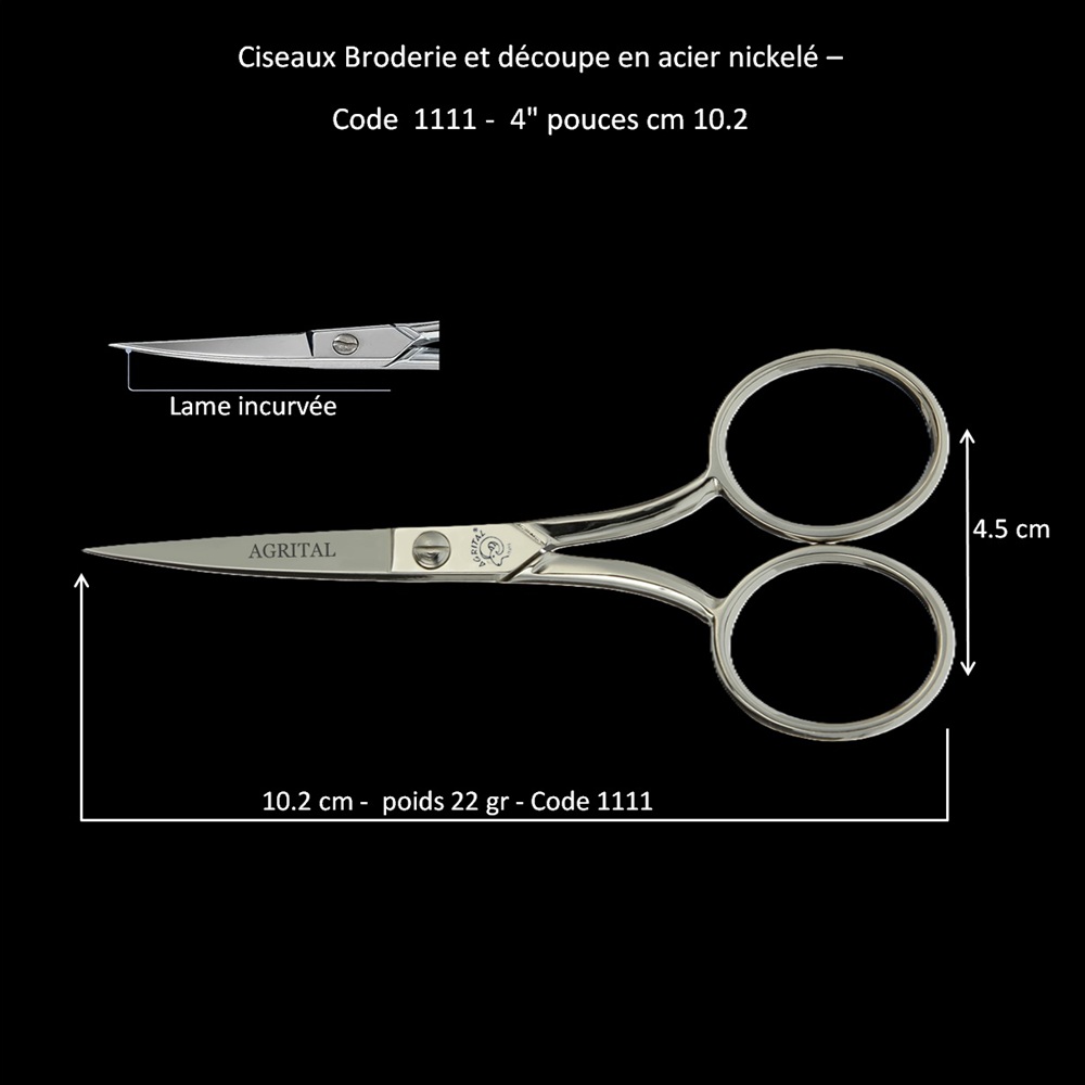 Ciseaux Broderie et découpe en acier nickelé – Code 1111 cm 10.2 - 4 pouces